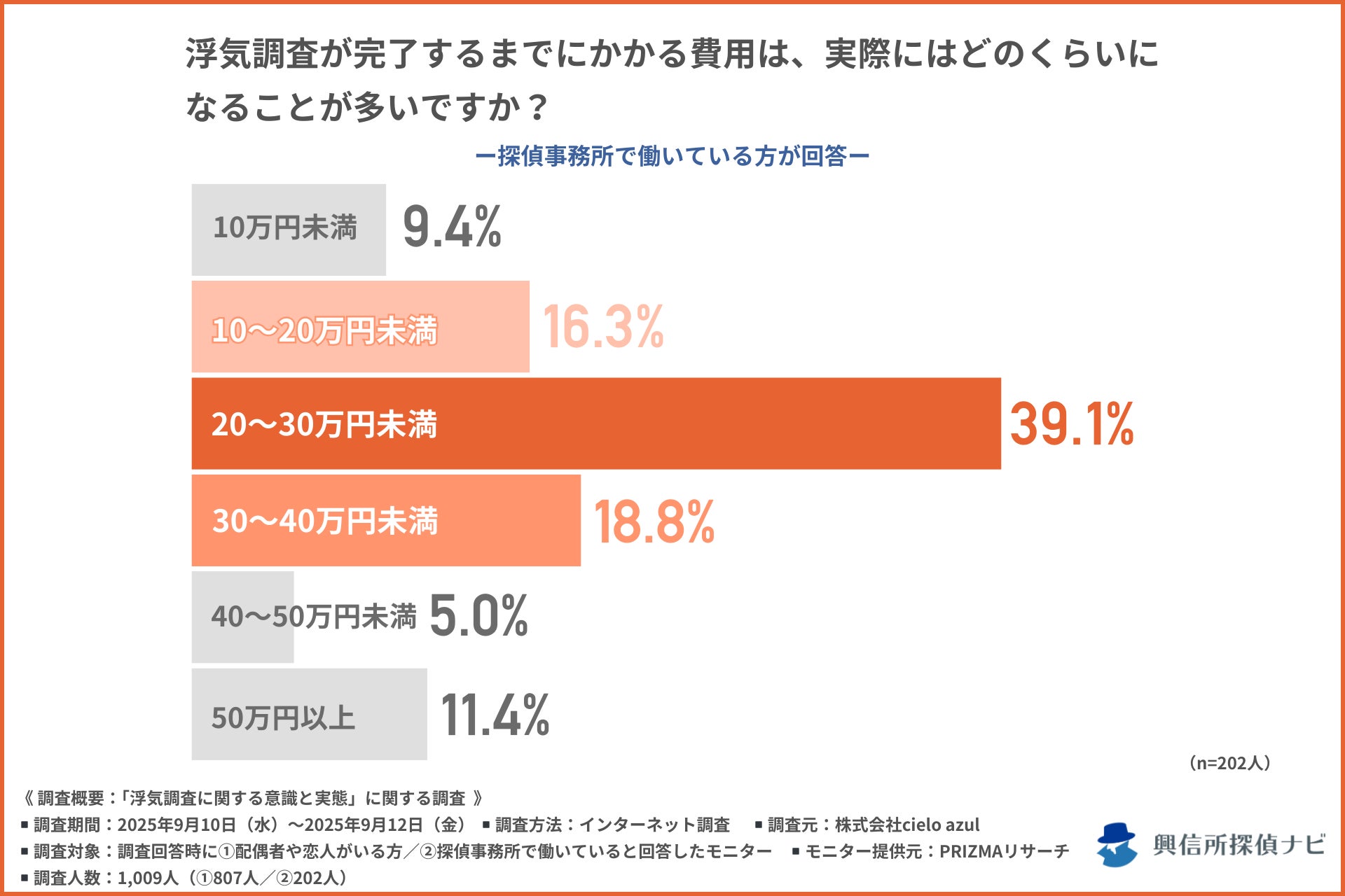 依頼者は「10万円未満」想定、探偵は「20〜30万円」が最多
