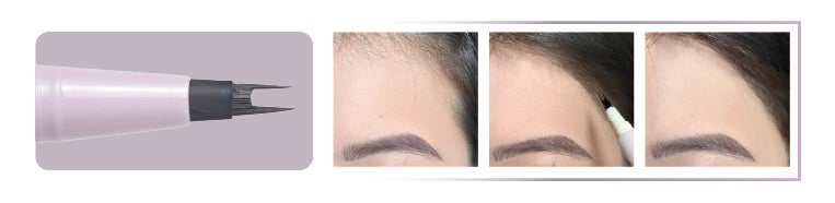 極細0.01mmの「ニ股筆」で、簡単に爆盛れ下まつげが即誕!アイブロウにはもちろん、生え際の産毛を描いてさらに小顔に。これ一本でデカ目も小顔も叶ってLove&Peace✌