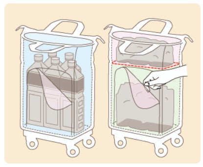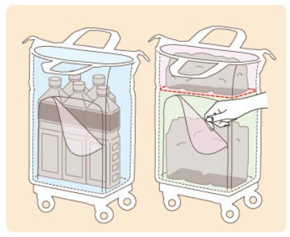 ・買い物時には上に財布や鍵などの小物、下には食品を分けて運搬