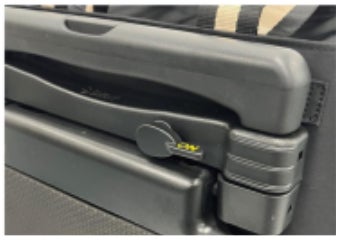 ワンタッチでキャスターをストップ。腰掛け時などバッグを固定可能です
