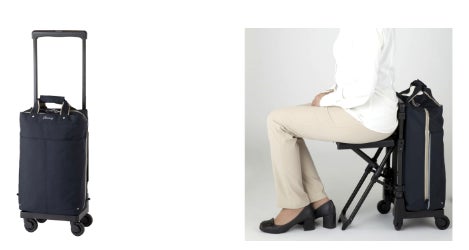 バッグが腰掛けに早変わり!チェアリング、釣り、スポーツ観戦などアウトドアから仕事まで!幅広く使える"座れる横押しキャリーバッグ"「D-630ポルド座面付」スワニーから新発売