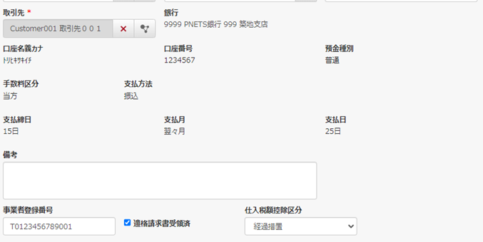 適格請求書発行事業者の登録番号をマスタに登録しておくことで、請求書を受領するたびに事業者登録番号の