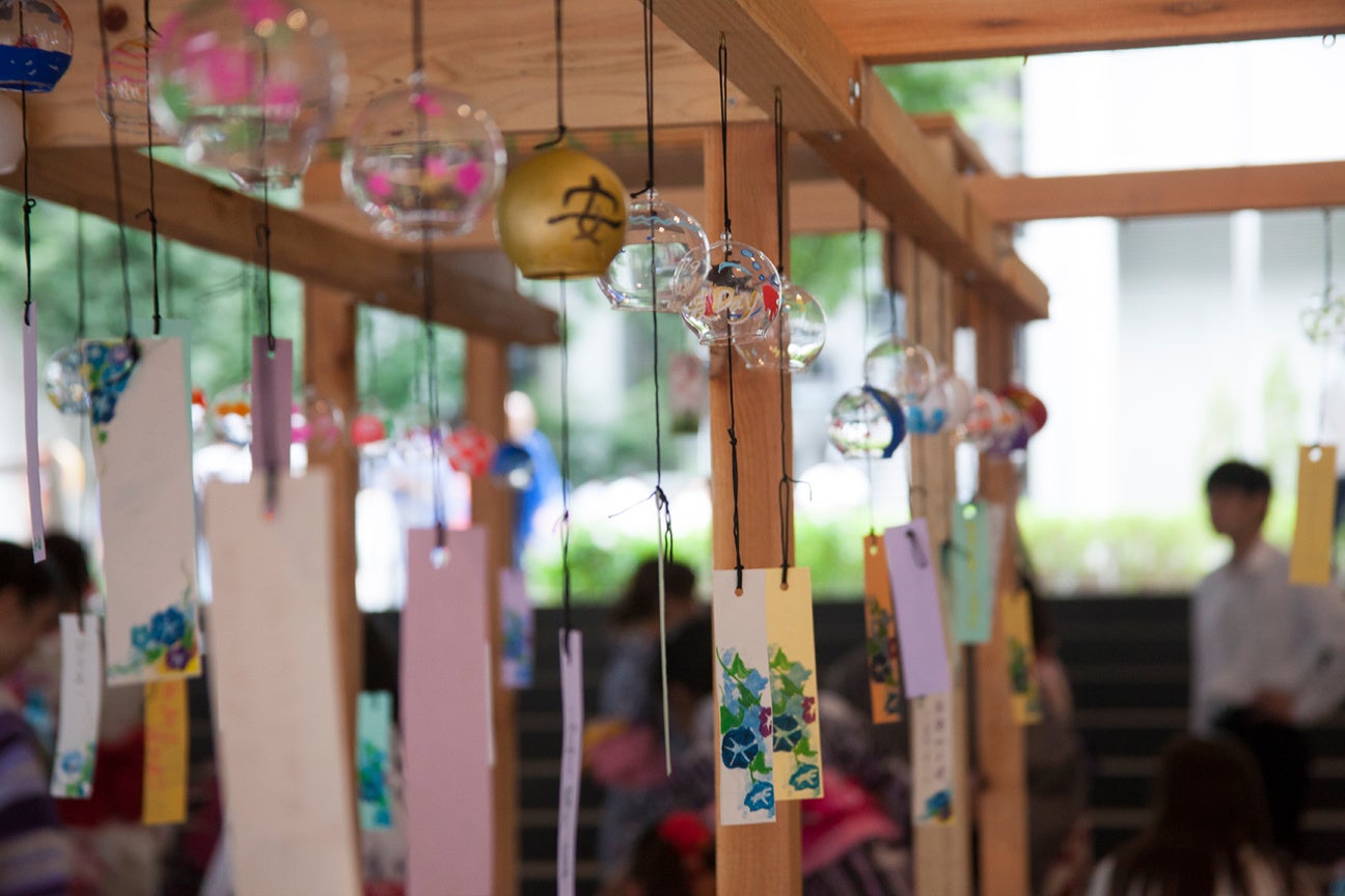 江戸時代から続く伝統工芸品「江戸風鈴」がキャンパスの風に吹かれ、音で"涼"を感じさせます。