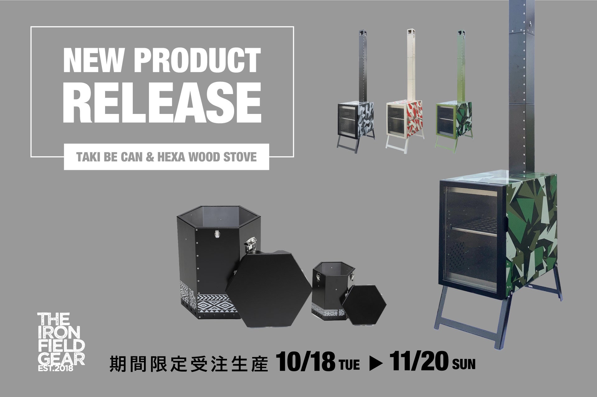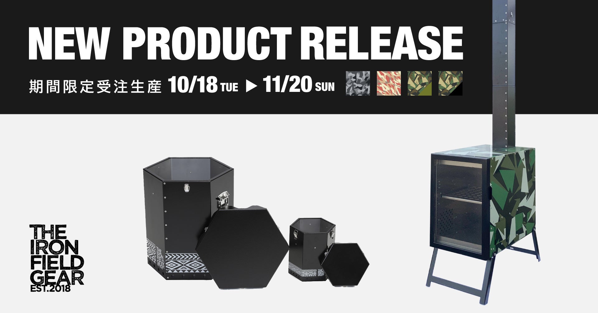 鉄加工のプロフェッショナルによるアウトドアブランド「THE IRON FIELD GEAR(ジ アイアン フィールド ギア)」を展開する株式会社興栄企画(本社:香川県丸亀市、代表取締役:森山竜志)は2022年10月18日(火)より、2製品に新色「迷彩柄」と「トライバル柄」を追加し、受注販売いたします。