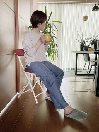 締め付け感の無いゆったりシルエットと軽いはき心地。おうちの時間をもっと快適に。