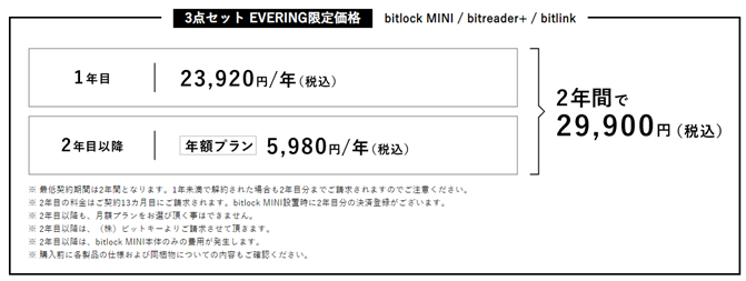 - EVERING限定「bitlock 2年契約バリュープラン」概要