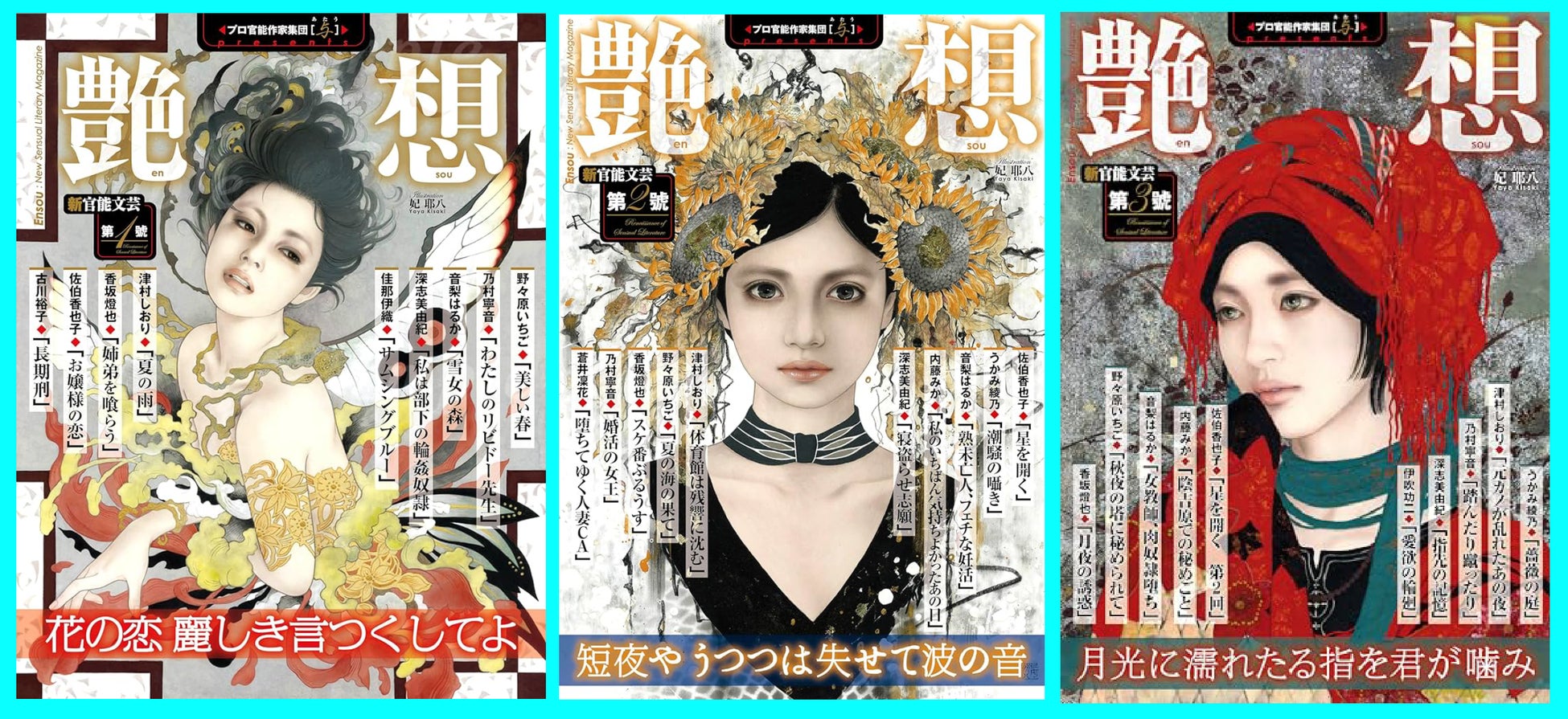 YOTSUYA BOOKSでは、一般の流通に乗らない小部数の本、ZINEなども扱っていく予定です。またYOTSUYA BOOKSだけで独占販売していく本も展開していく予定です。一例として、「艶想」(えんそう)という官能小説アンソロジー本を紙の書籍で11月1日(オープン同日)より発売していく予定です。