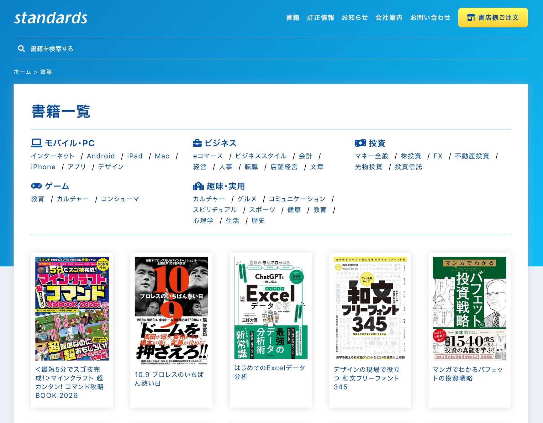 スタンダーズのHPでは、既刊〜最新刊の書影や情報を閲覧できます。本についての質問、お問い合わせもこちらからどうぞ。