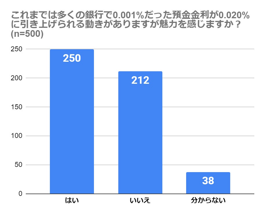 回答者の約半数が、銀行預金の利率上昇を魅力的と感じている