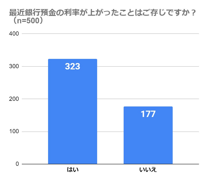 回答者の約65%が、銀行預金の利率が上がったことを認知