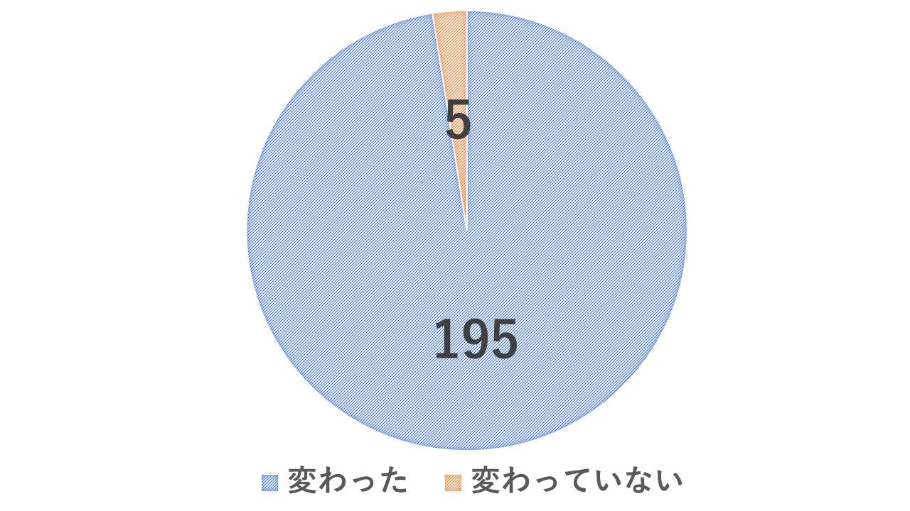 コロナウイルス感染拡大により、除菌抗菌に関する意識が変化したと回答した人は、全体の97.5%とほとんどの人が「意識が変わった」と回答しています。