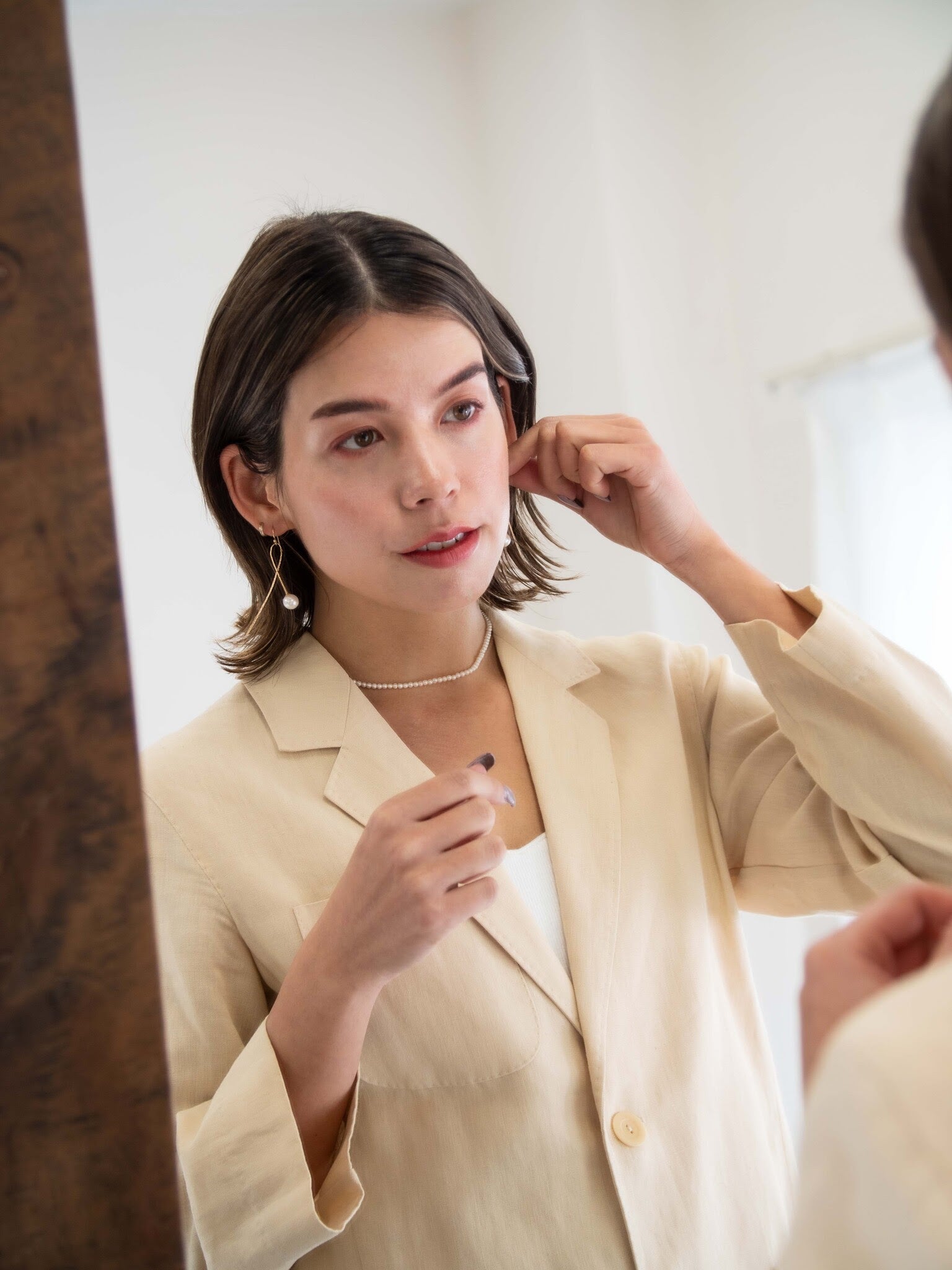 その時の状況や変化に柔軟に対応して、自分らしく、軽やかに行動したい。外出する時も、重ねてつけてもストレスがない、肩に力の入らないメイクが今の時代にぴったりです。メイクのポイントは、素肌の美しさを引き出すこと。メイクアップベースにオイルを1滴混ぜてツヤをアップして、自然な陰影をつけるコントゥアで肌に立体感を引き出します。