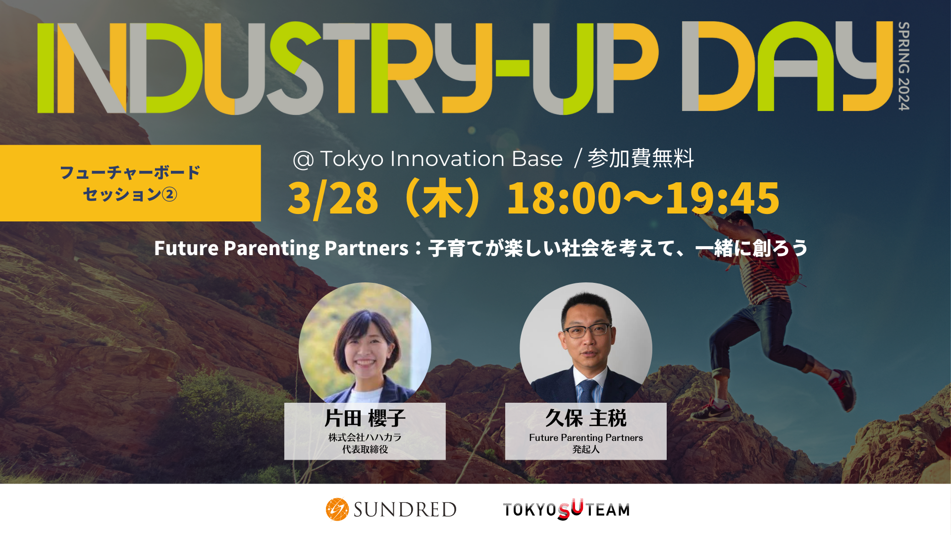 ハハカラ代表の片田がSUNDRED株式会社主催の「Industry-Up Day Spring 2024」にて「Future Parenting Partners」イベントに登壇いたします