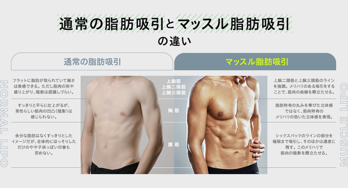 脂肪吸引と脂肪注入を専門とし、国内の技術トレーニング機関でもあるTHE CLINIC(運営:医療法人社団 THE CLINIC Institute、所在地:東京都港区、代表:大橋昌敬)は、この度、筋肉の陰影を強調する新しい脂肪吸引「マッスル脂肪吸引™️」を開発。この4月から本格スタートさせる運びとなりました。マッスル脂肪吸引™️は、従来の脂肪吸引とは異なり、脂肪をフラットに除去することはしません。筋肉の美しさを最大限に引き出す脂肪吸引で理想の肉体美をデザインし、人生を自信に満ちたものへと変える施術です。ジムトレーニングやダイエットの効果に効果に限界を感じているすべての人へ、最後の一押しを提供します。