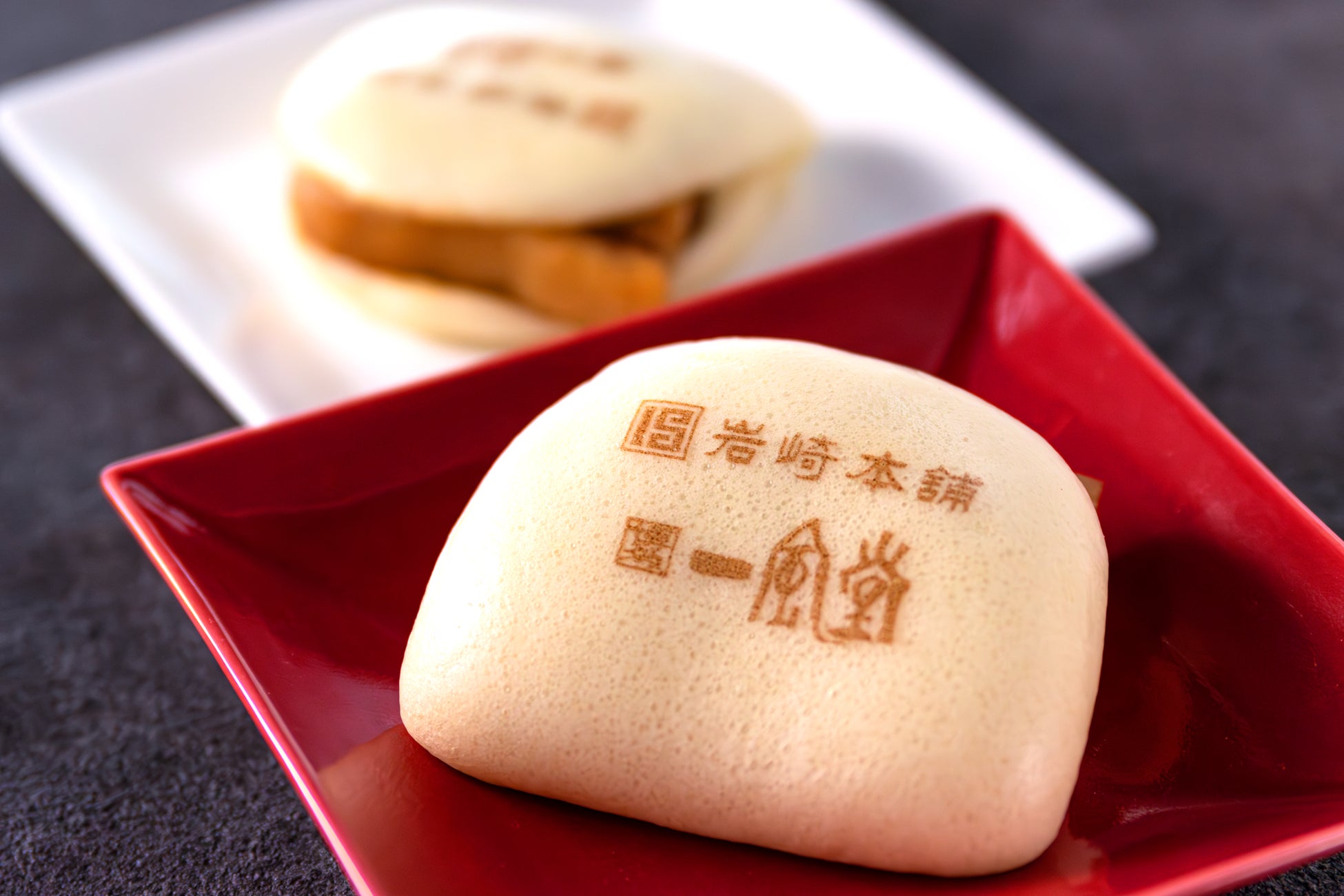 メインは、コラボ開発の限定商品「博多とんこつ角煮まんじゅう」です。一風堂の人気調味料「秘伝のとんこつダシ」などで味付けた「岩崎本舗」特製の角煮と、それに合うバンズを一から共同開発しました。バンズには「岩崎本舗」と一風堂のロゴ焼き印を入れています。