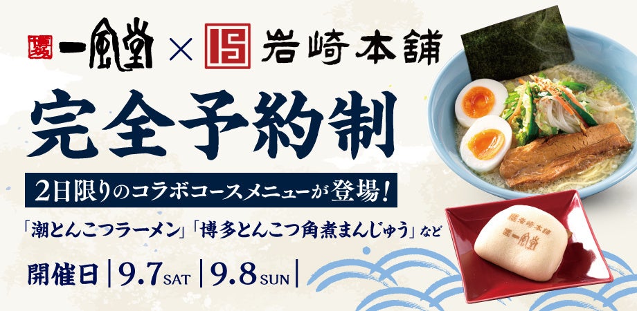 「株式会社岩崎食品」(長崎県長与町、代表取締役:岩崎礼司)は、株式会社力の源ホールディングス(本社:福岡市中央区、代表取締役社長:山根智之)傘下の力の源カンパニーが運営する一風堂と共同で「博多とんこつ角煮まんじゅう」と「潮とんこつラーメン」を開発しました。そのお披露目会として2024年9月7日(土)と8日(日)の2日間、東京都港区「一風堂 浜松町スタンド」にて、特別コースを堪能できる予約制イベントを開催します。