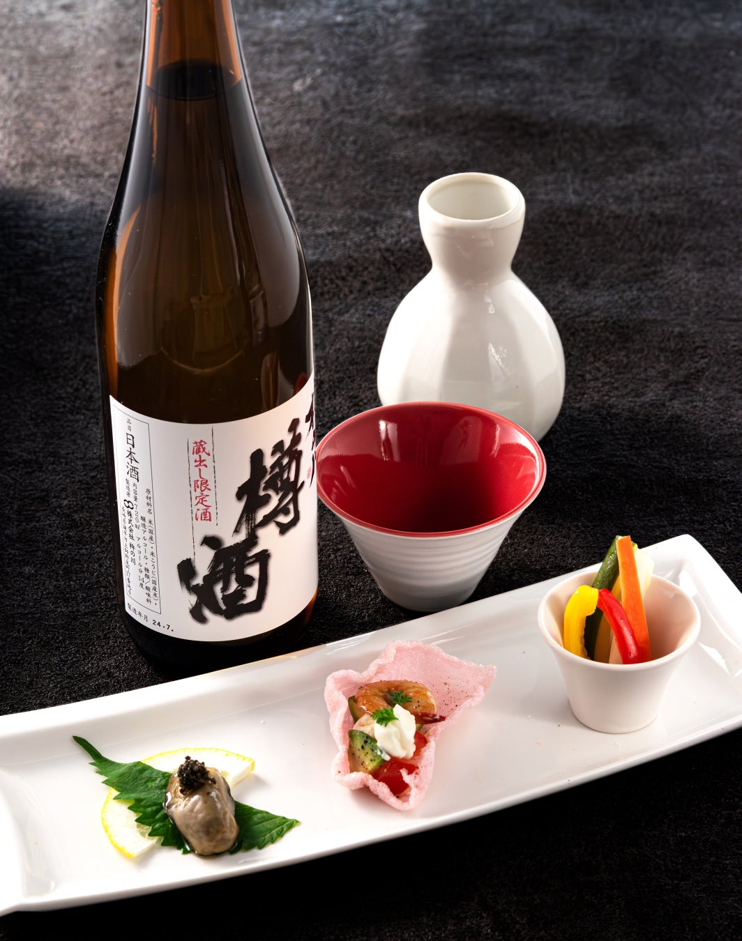 日本酒は、1839年創業の長崎県を拠点とする老舗酒造「株式会社杵の川」(きのかわ)の厳選された3種の日本酒をおちょこ1杯ずつご用意します(日本酒は飲み放題に含まれません)。