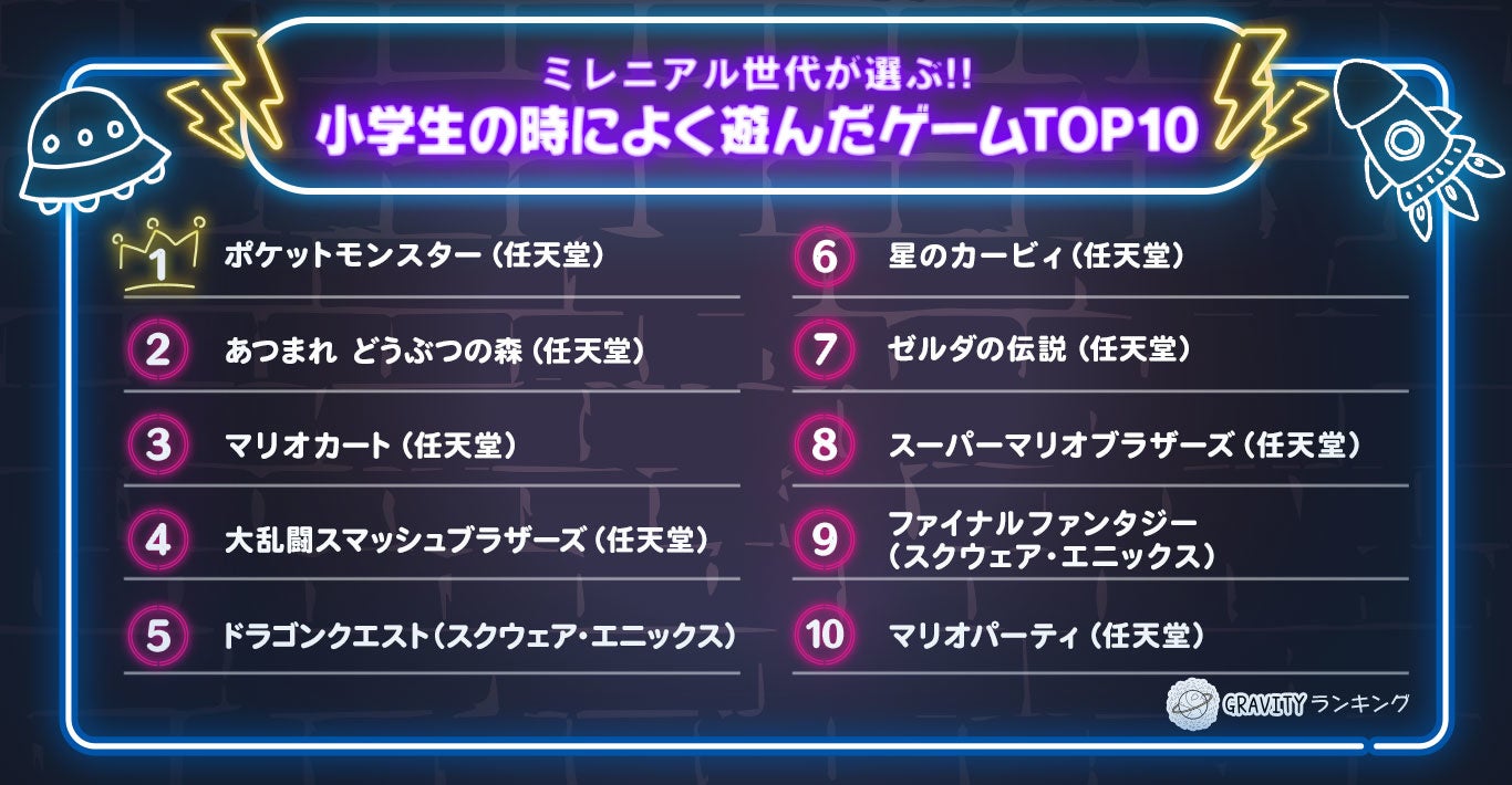 【GRAVITYランキング】ミレニアル世代が選ぶ!!「小学生の時によく遊んだゲームTOP10」