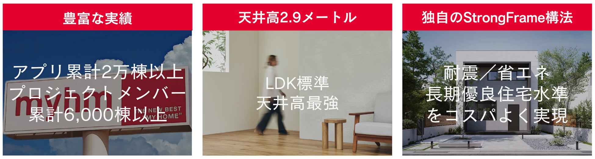 『myhm base』は、3つの特徴を掲げ、家づくりのご提案をします。