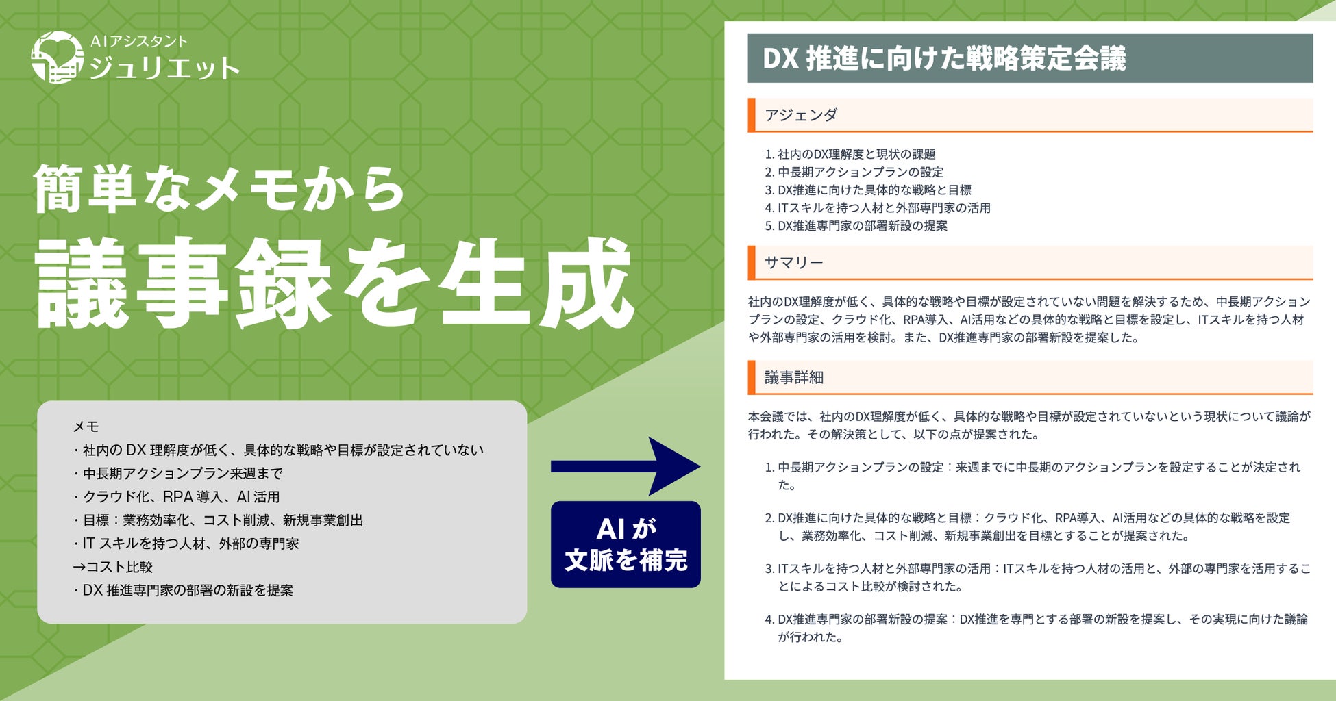 議事録を1クリックで自動生成:ジュリエットが業務AI新機能をリリース