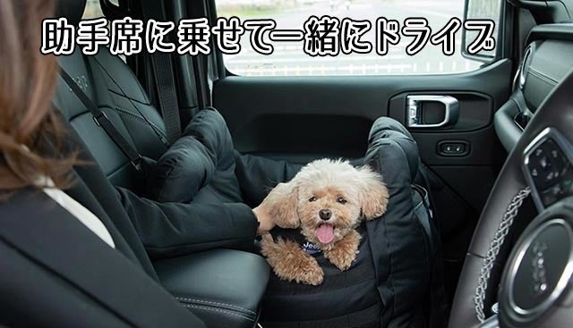 ②助手席・後部座席に固定でき、大切なワンちゃんと一緒にドライブができる!