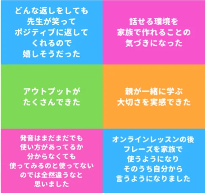 ・親子で英会話を通してコミュニケーションの量が増えた。