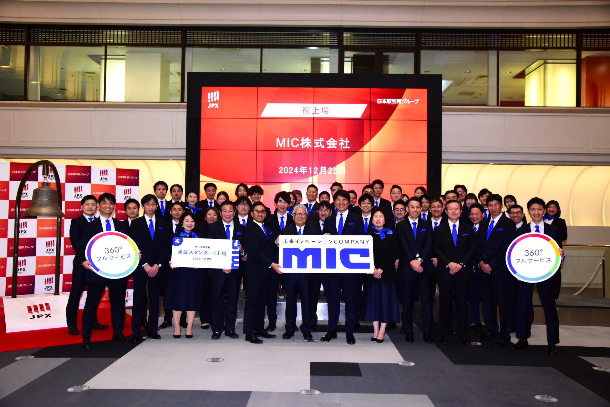 MIC株式会社(所在地:東京都新宿区、代表取締役会長 水上 光啓、代表取締役社長 河合 克也、以下「当社」)は2024年12月25日、東京証券取引所スタンダード市場(証券コード:300A)へ新規上場いたしました。