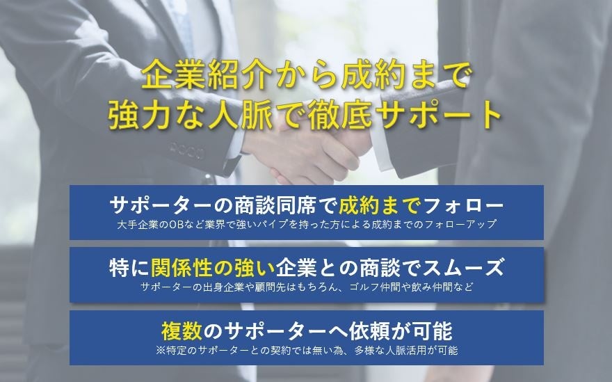 サポーターは商談時にも同席する為、依頼元企業は成約に向けて手厚いサポートを受けられます。