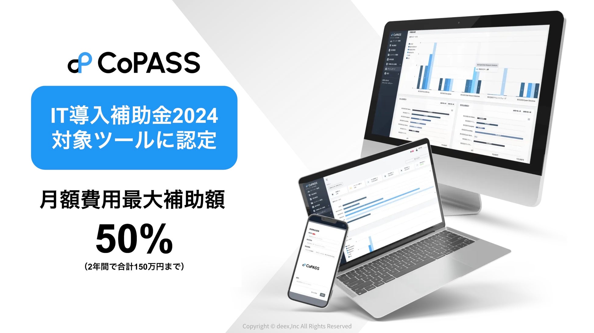「企業が本来持っている可能性を最大化する。そのために、パートナービジネスを再定義する。」をミッションに掲げ、パートナービジネス(代理店チャネル)関連の各種サービスを提供するdeex株式会社は、当社が提供しているPRMツール「CoPASS」がIT導入補助金2024の対象ツールに採択されたことをご報告いたします。