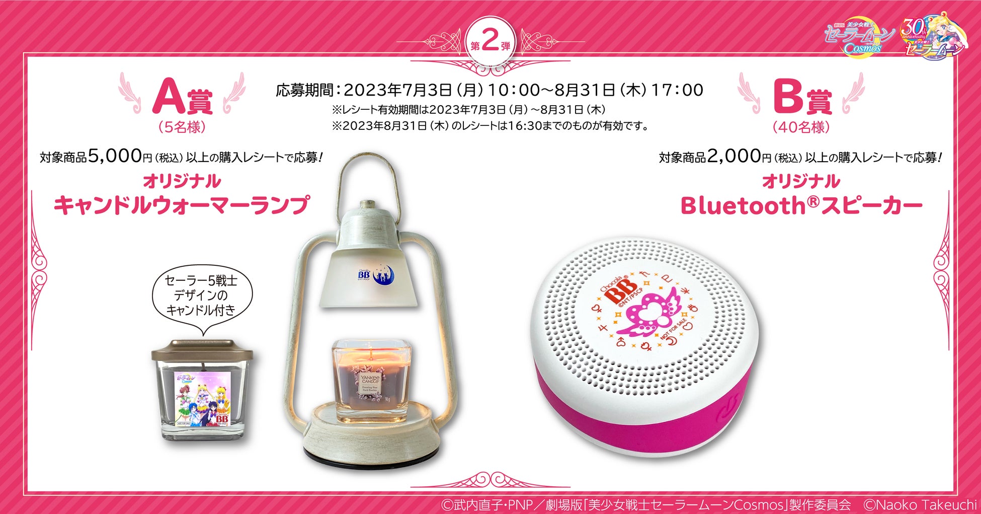 第2弾ではA賞・B賞の賞品を一新いたしました。ルナ、アルテミス、ダイアナのシルエットが可愛いキャンドルウォーマーランプや、バスタイムが楽しくなる防水タイプのBluetooth®スピーカーを抽選でプレゼントします。