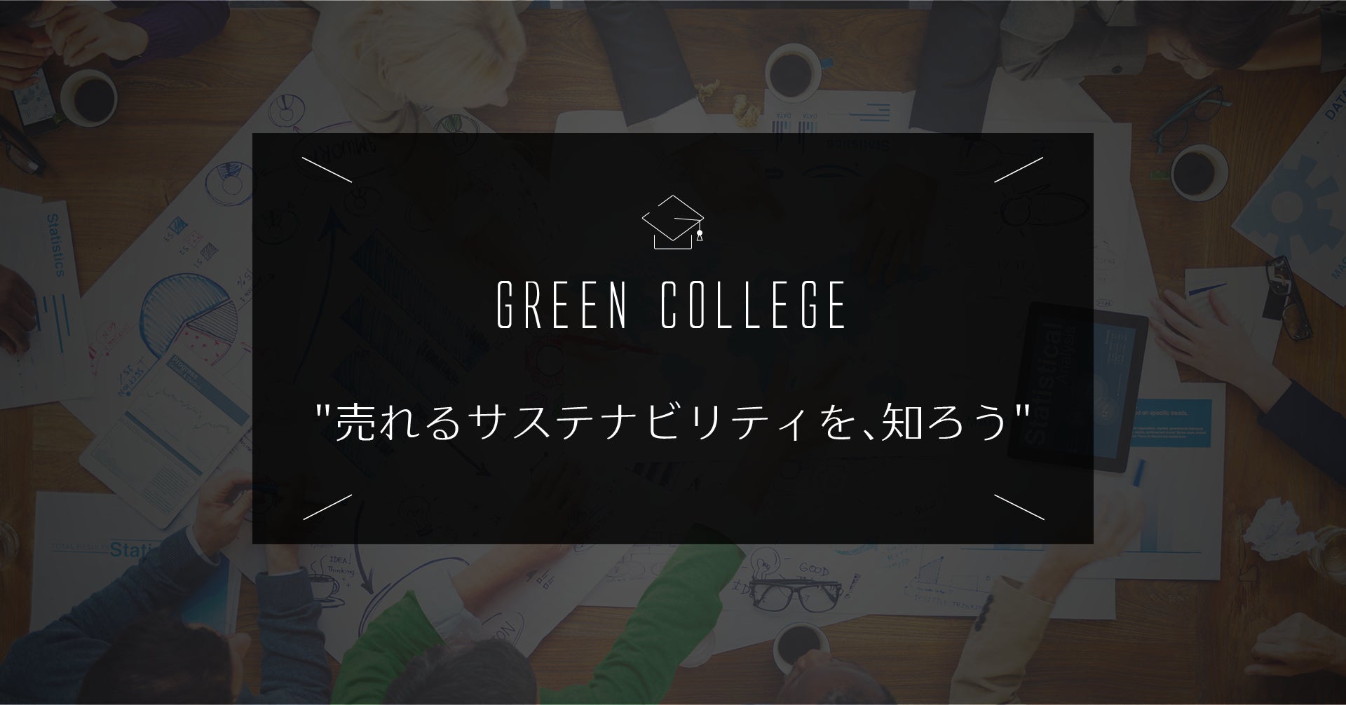 「GREEN COLLEGE」は、ますます重要となってくるサステナビリティを抑えながら成長を続けたい企業様へ、消費者に何が受けるのか?、最新のテクノロジーは何があるのか?、競合はどんな取り組みをしているのか?などを提供する、"売れるサステナビリティ"の実現を支援するサービスです。