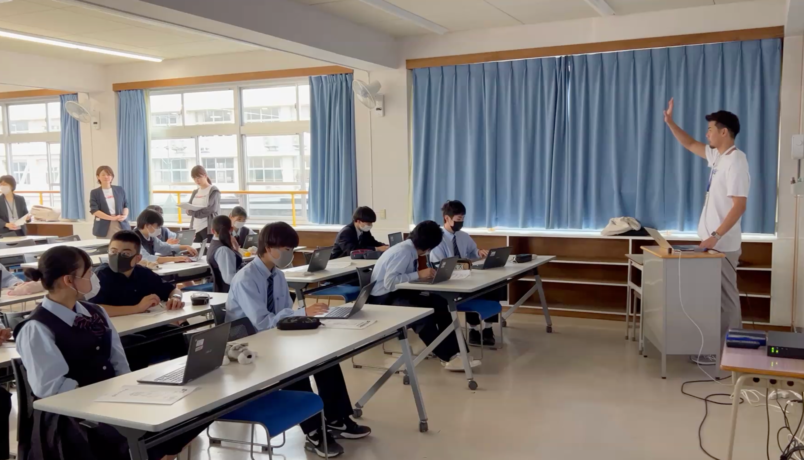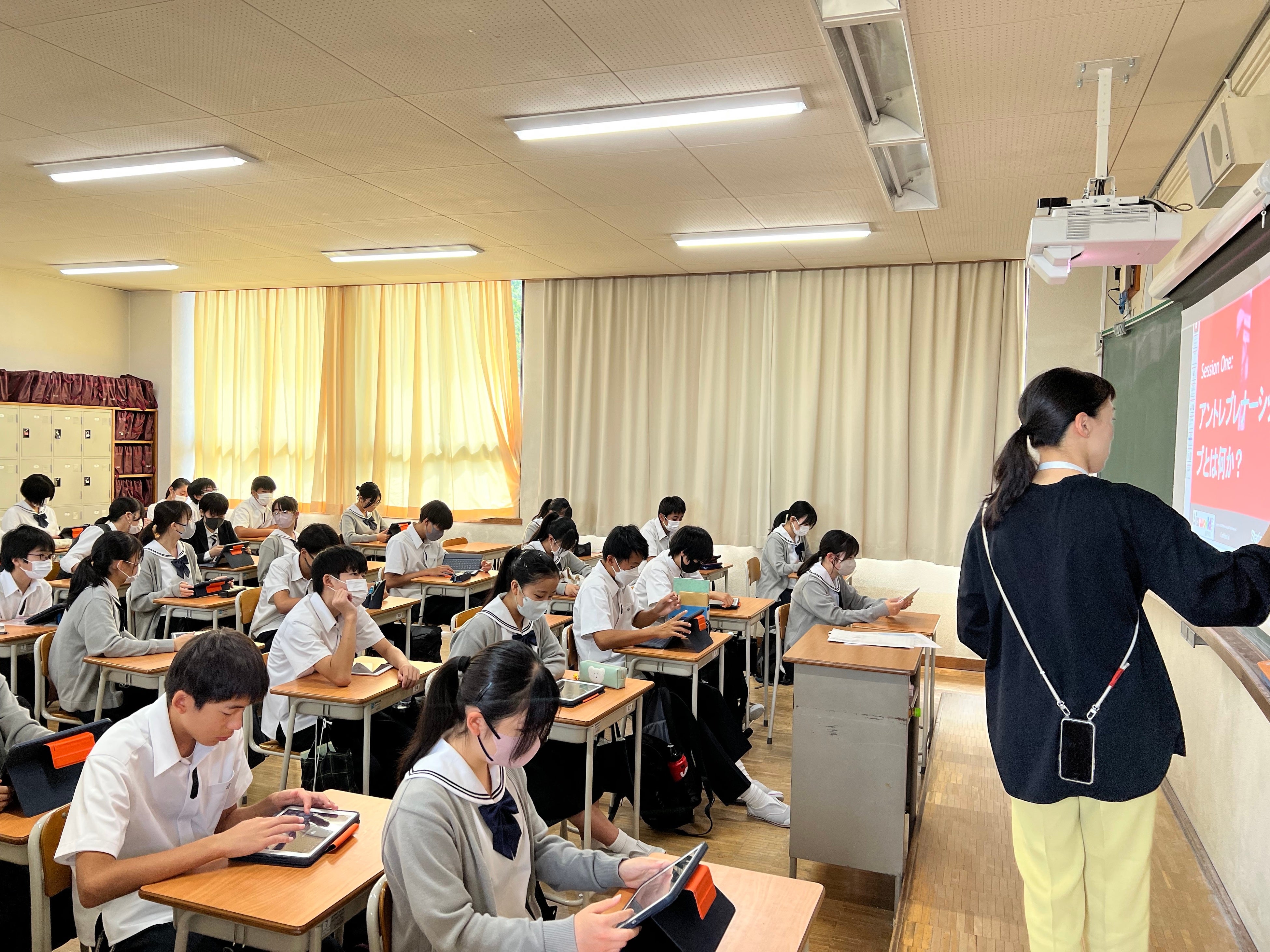 導入を決めたきっかけは「失敗する機会があるということ」と答えてくださったのは啓明学院中学校の小堀先生。「振り返ったらこうしたら良いなと考えられる機会が多いんです。未知のことに対して、知らず知らずのうちに挑戦できている。大人になったら仕事をするにしても、協力して、行動もともなう。『協動』という文科省が掲げる教育目標を達成できるプログラムです」と話してくださいました。