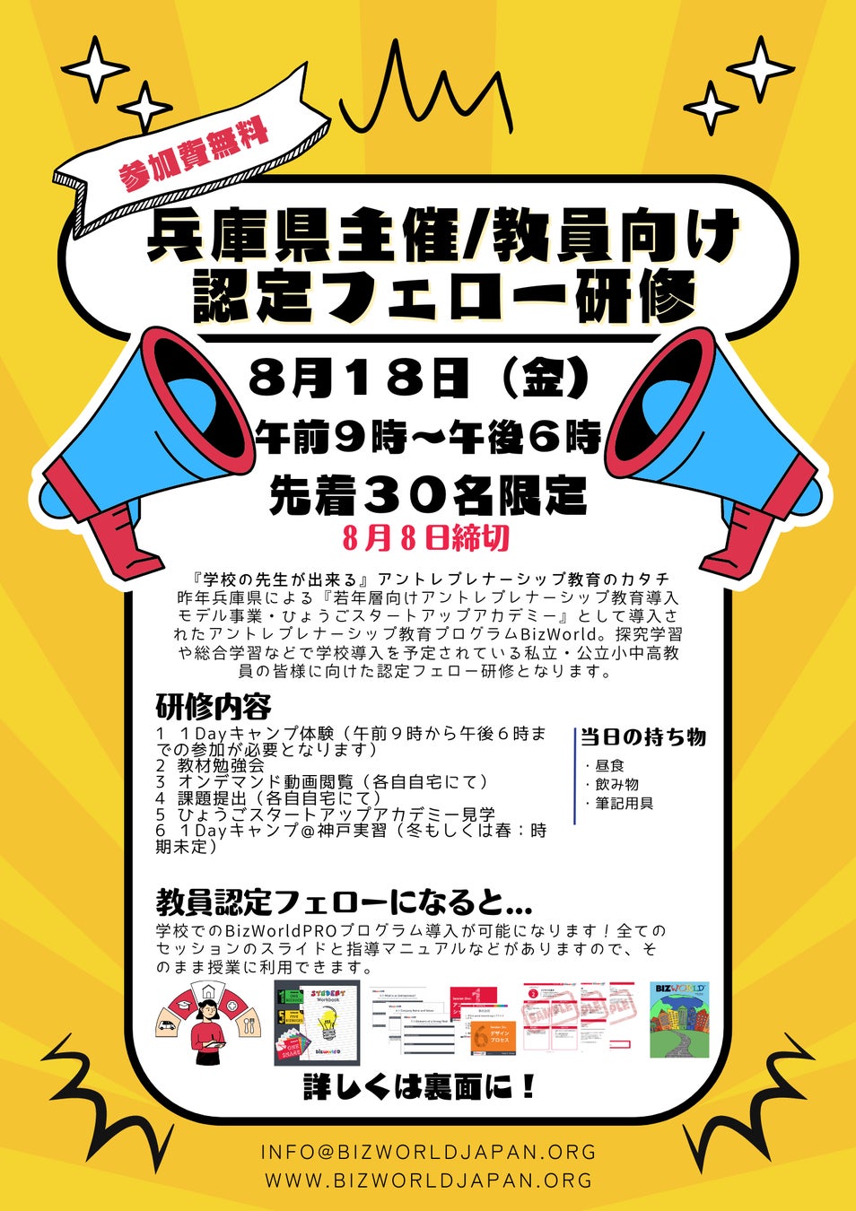 お問い合わせは:info@bizworldjapan.orgまでご連絡下さい。
