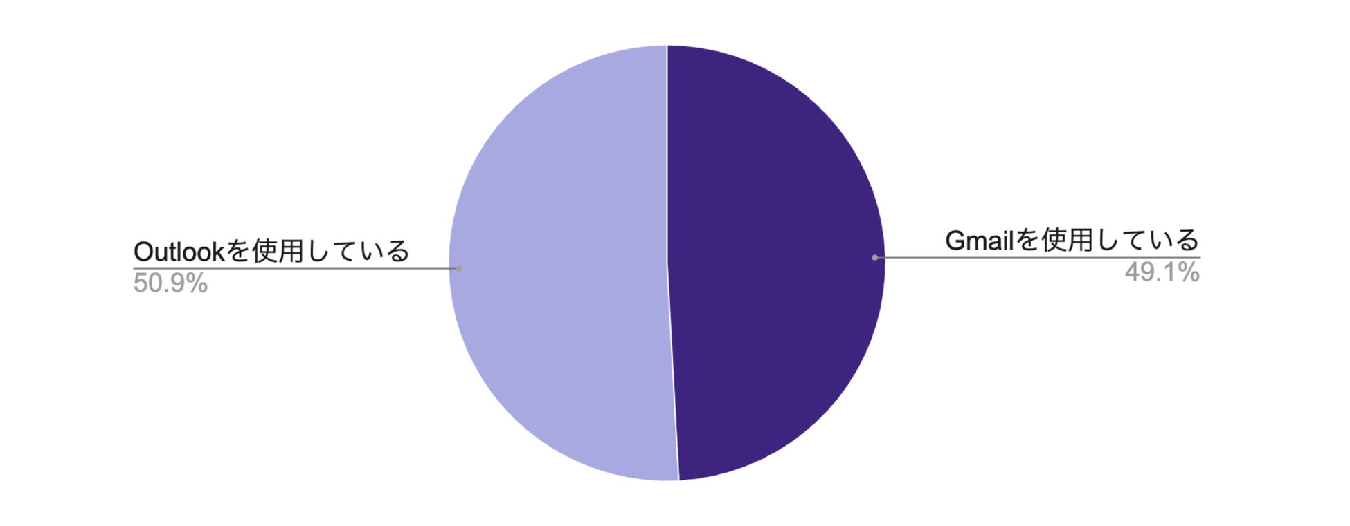 最初に、業務においてGmailとOutlookのどちらを主に利用しているか尋ねた結果がこちらです。