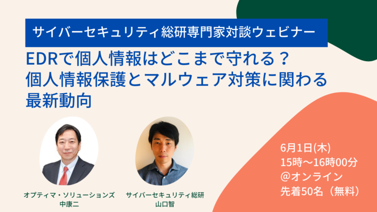 《プライバシーザムライ×サイバーセキュリティ総研共催》EDRで個人情報はどこまで守れる?個人情報保護とマルウェア対策に関わる最新動向(6月1日リモート開催)