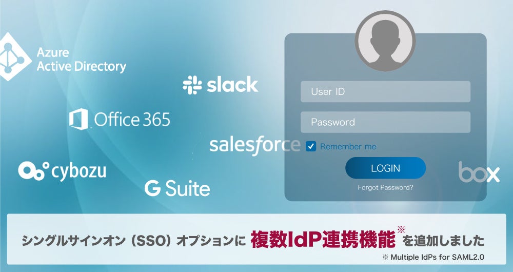 そこで、各社が利用中のIdP情報(例:Office365、G Suiteなど)をSOLANOWA上だけで管理できるよう「複数IdP連携機能(Multiple IdPs for SAML2.0)」を開発することで、統合管理システムの導入や統合作業の手間を省き、また、従業員は既に自社のSSOで認証済みのため、別途ログインし直すことなくグループ報へアクセスすることを可能にしました。