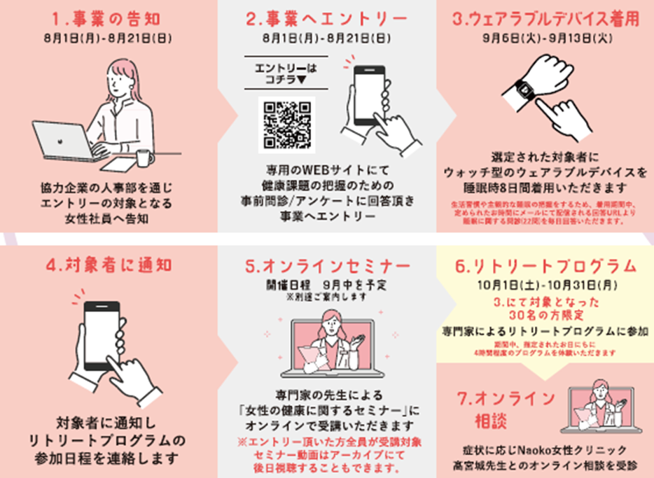 本実証事業は、経済産業省の「令和4年度フェムテック等サポートサービス実証事業費補助金」において、「働く更年期女性の睡眠を可視化したリトリートプログラム実証事業」として採択されました。