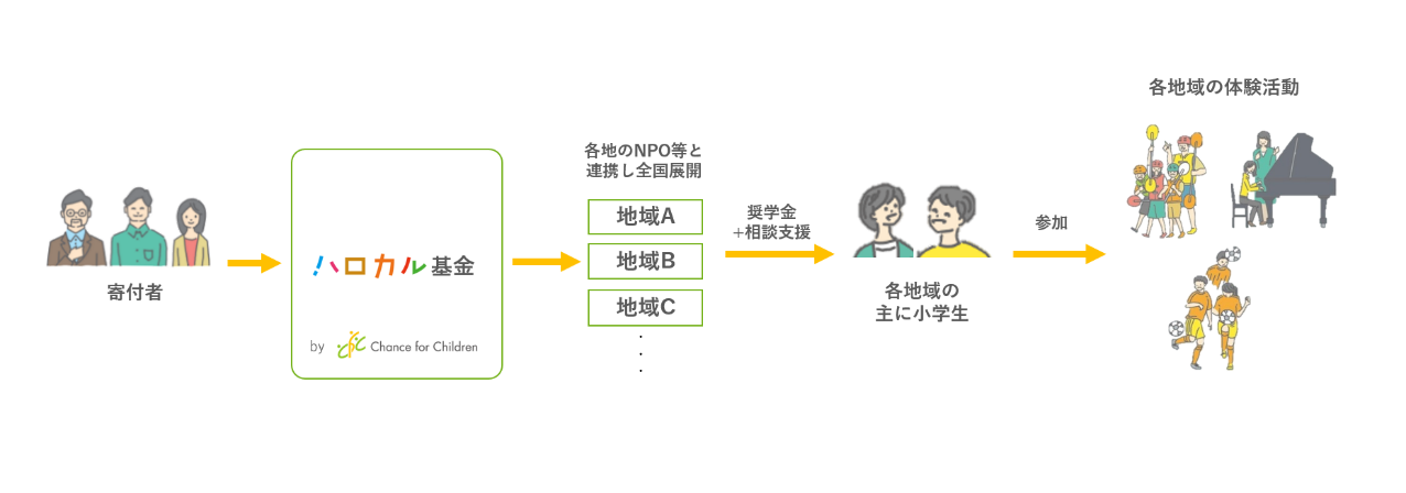 クラウドファンディングにより募った寄付金は、全額が「ハロカル奨学金」として子どもたちの体験活動の参加費用に使用されます。