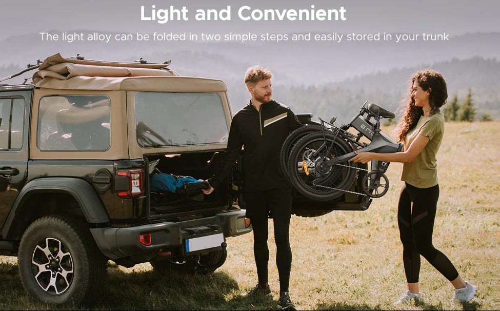 キャンプ・アウトドアに最適な折りたたみ式。キャンプやアウトドアの出先で駐車した後、周辺をENGWEに乗って回る事で知らない土地を最大限楽しむ事が可能です。