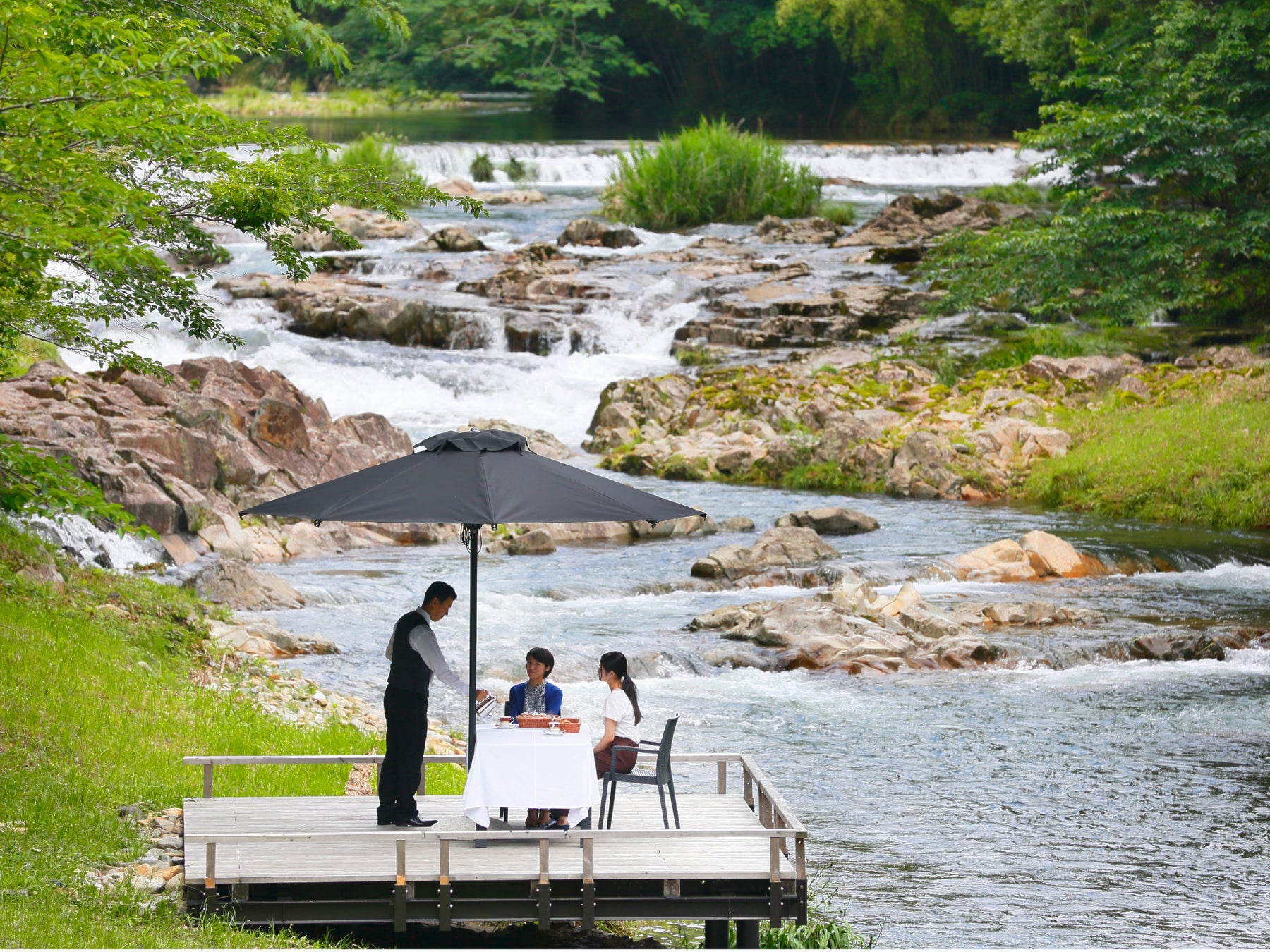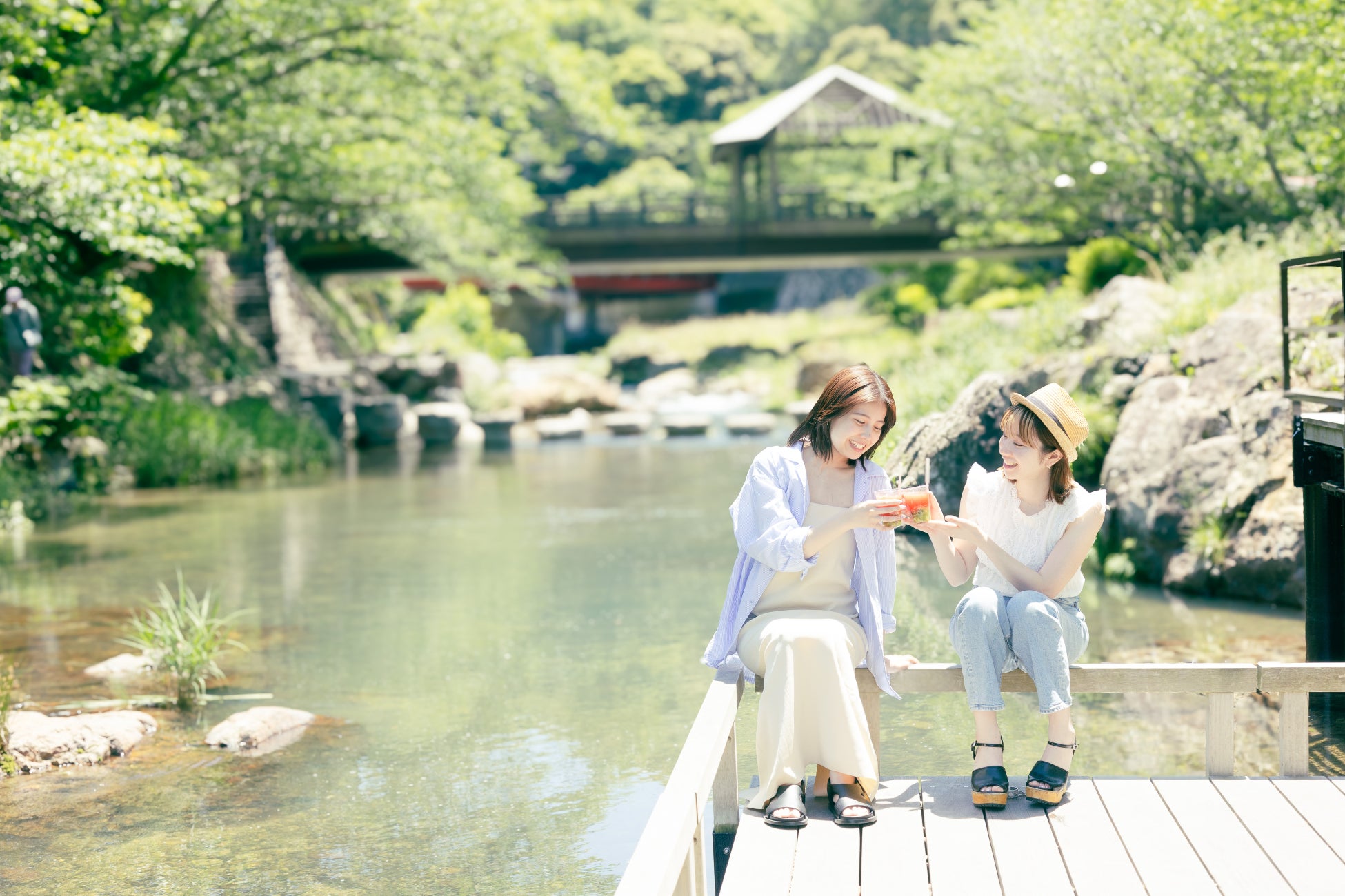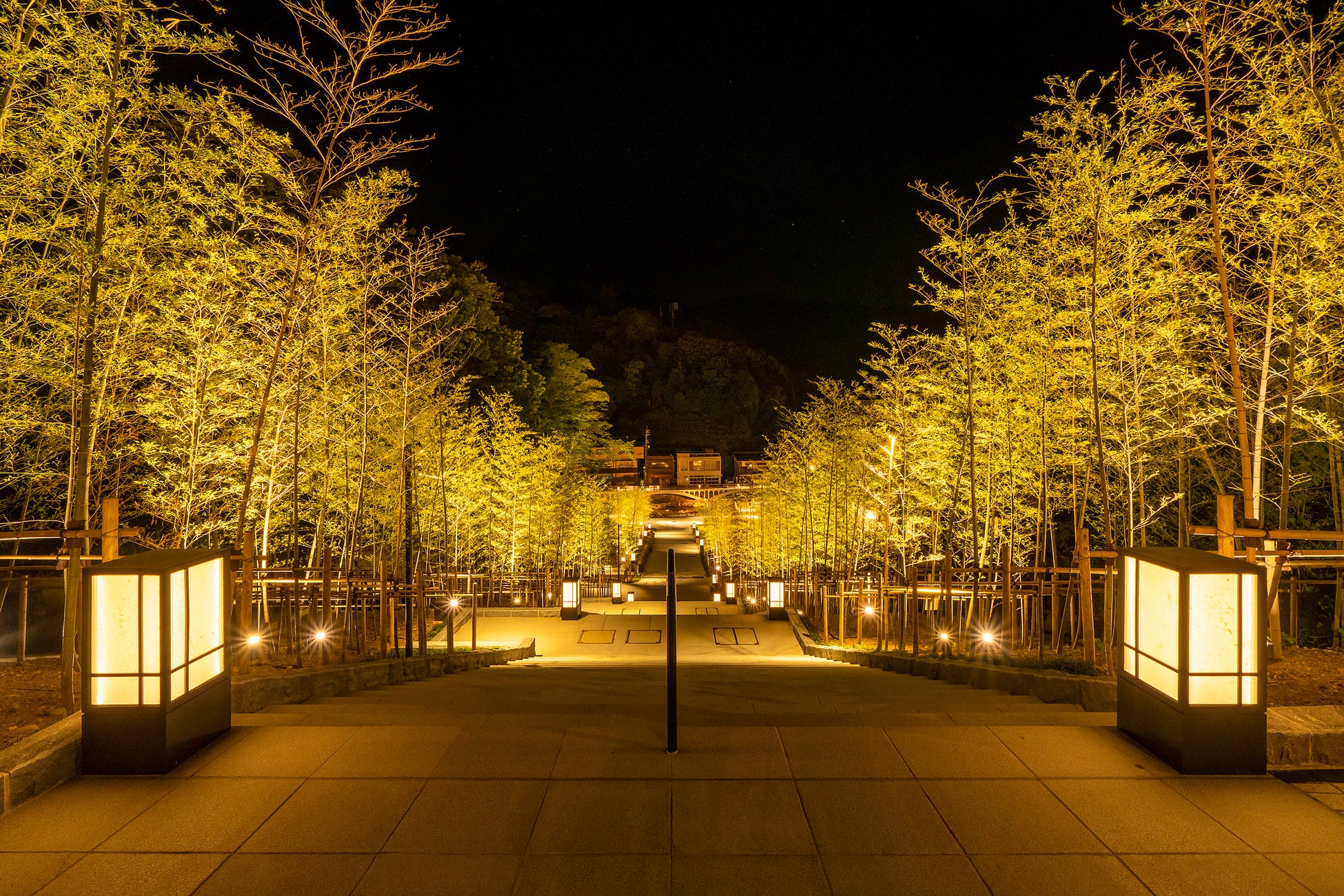 長門湯本温泉のシンボル「恩湯」や、山口県内初となる川床テラスや飛び石や、幻想的なライトアップなど、「オソト天国」がみなさまをお待ちしております。