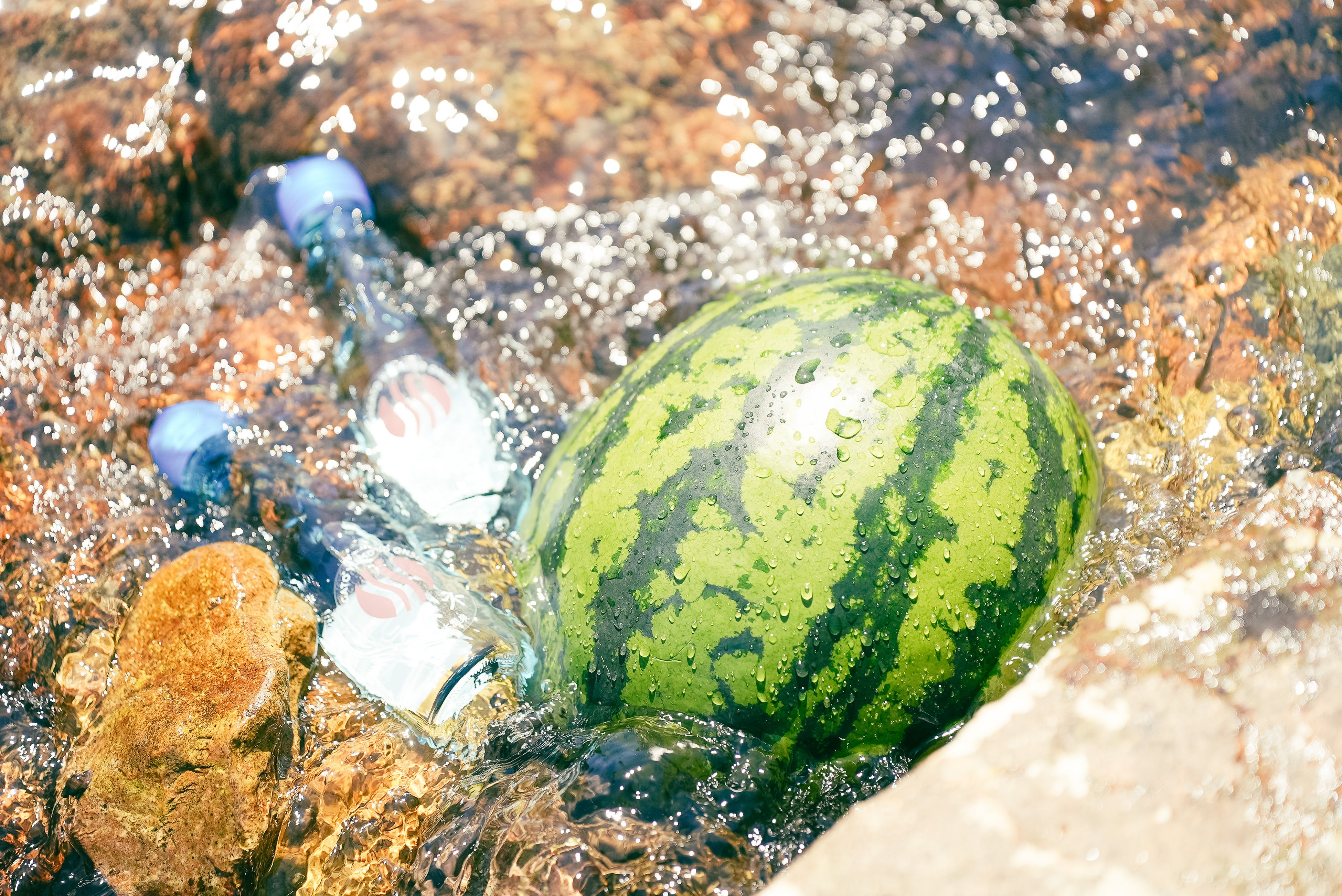 ひんやりしたスイカは暑気を吹き飛ばす効果があります。川床テラスや温泉街のベンチでのんびり涼やかに寛ぎながら、味わっていただけます