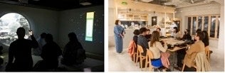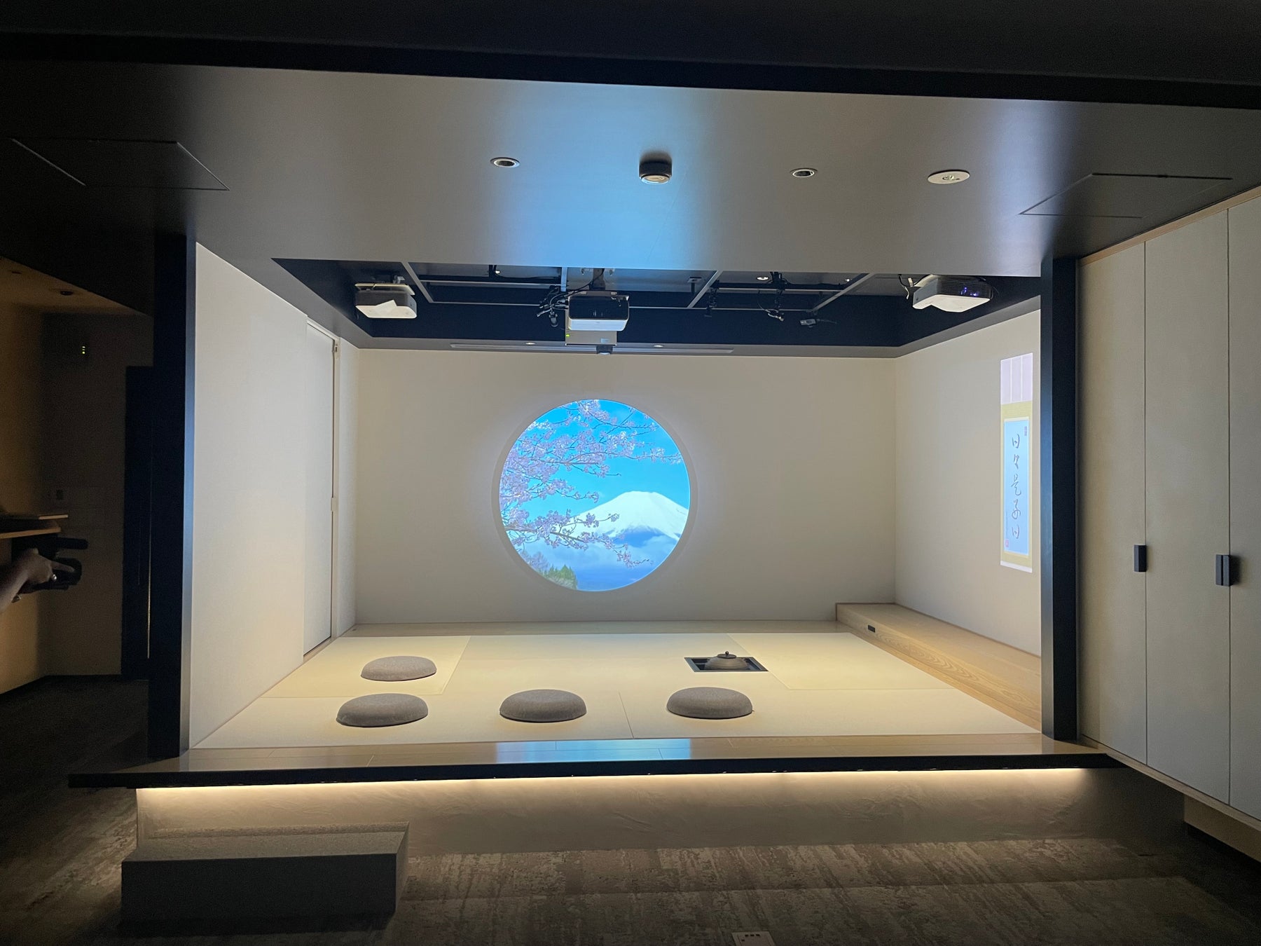 DX時代の新しい茶会の楽しみ方」を提案すべく、富士通株式会社「Izuminaチーム」、株式会社電通のクリエイティブチームとのコラボレーションによるインタラクティブ茶会体験「CYBER CHAKAI(サイバー茶会)」を今年1月に富士通記念ライブラリーにて開催(写真上) 。参加チケット発売が5日間で完売という人気ぶりに、伝統文化×DXへの関心の高さと期待感を感じさせる、革新的な茶会イベントに。また事前にお菓子キットを送付しVRとzoomで同じお菓子をいただきながら一座建立で世界をつなぐオンライン茶会「茶空会」(写真右)、「新しい茶懐石の楽しみ方」を提案すべく、茶懐石の原点である「一汁一菜」をお抹茶とともに楽しむワークショップ「一汁一菜と一服」、オンライン予約で気軽に茶道を楽しむオンデマンドの茶室体験「ATELIER MATCHA CHADO CLUB」など日常で気軽に楽しく茶道やmatchaを楽しめる体験を提案している。