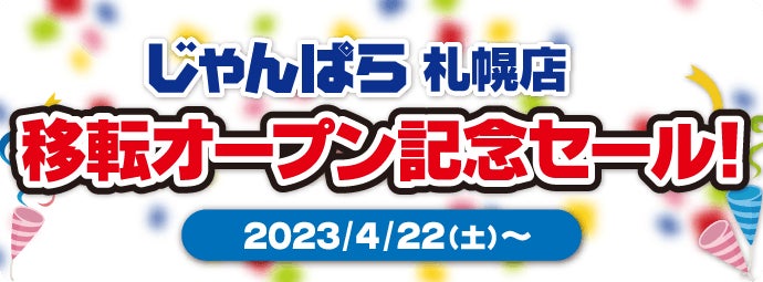 「じゃんぱら札幌店」の移転オープンを記念し、オープニングセールをはじめとしたさまざまな企画を開催いたします。