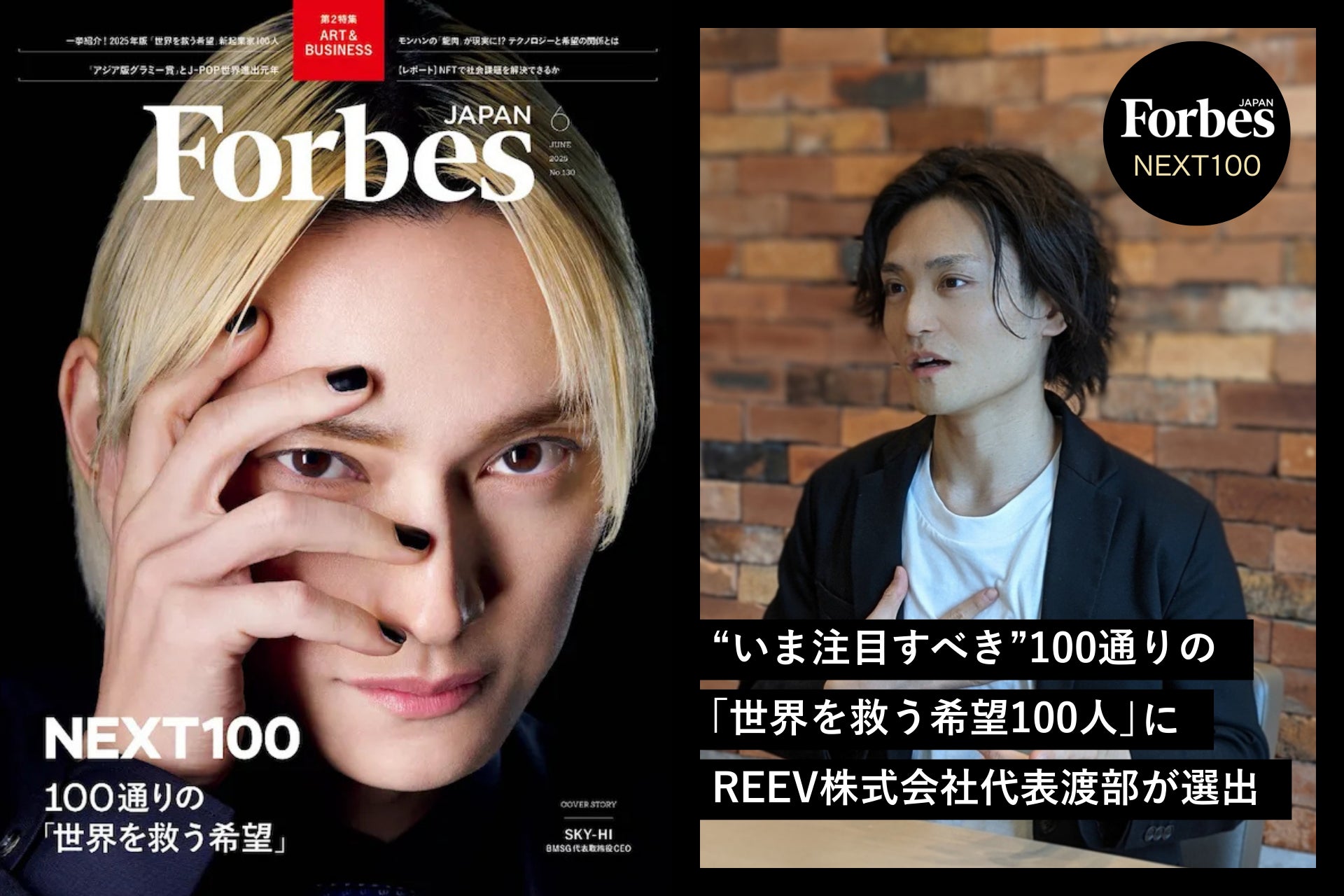 「多彩な新・起業家たち100人」に注目するForbes JAPANの特集「NEXT100」100通りの”世界を救う希望”にREEV株式会社代表取締役渡部裕介が選出されました。