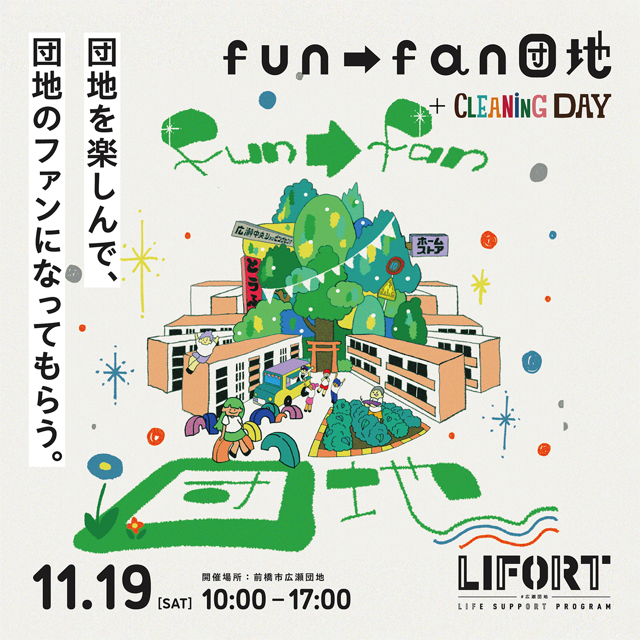 11月19日(土)に群馬県内最大規模の広瀬団地で【fun→fan団地】秋のイベントが開催されます。LIFORTプロジェクトでリノベーションを行ったシェアルームや広瀬団地内の公園、隣接する飯玉神社までを様々な出展者が装飾し1日限りの展示会を行います。