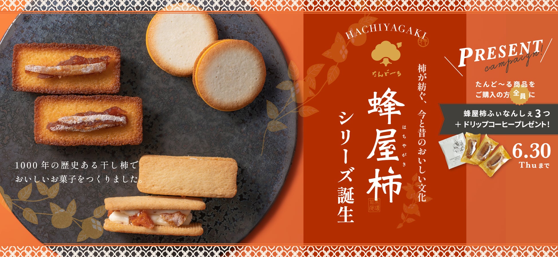 若尾製菓株式会社(本社:岐阜県美濃加茂市、代表取締役社長:若尾達也 以下若尾製菓)は、自社工場敷地内のバウムクーヘンのお店「たんど~る」の新商品「たんど~る 蜂屋柿シリーズ」を自社ECサイト「Wayu 若尾製菓online store」にて、5月31日(火)に販売開始いたします。それを記念して、自社ECサイトで取り扱うたんど~る商品を購入した方にプレゼントキャンペーンを期間限定で開催中です。