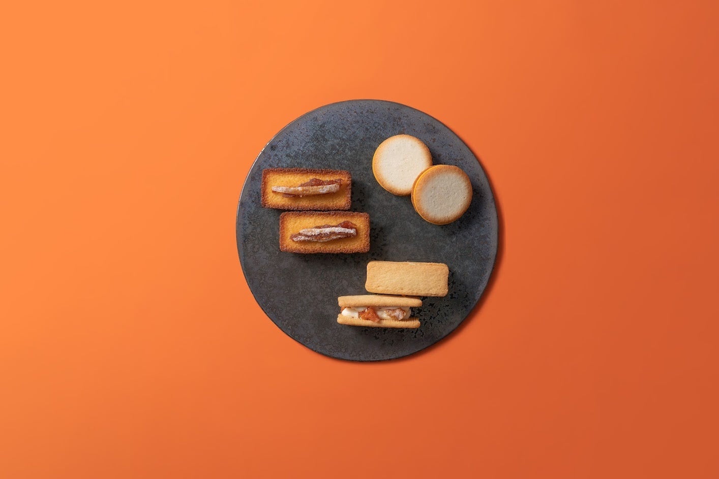 バターの濃厚な風味と香ばしいアーモンドプードルの香りが広がるふぃなんしぇ。棒状の蜂屋柿果肉をトッピングし特別感のあるお菓子に仕上げました。