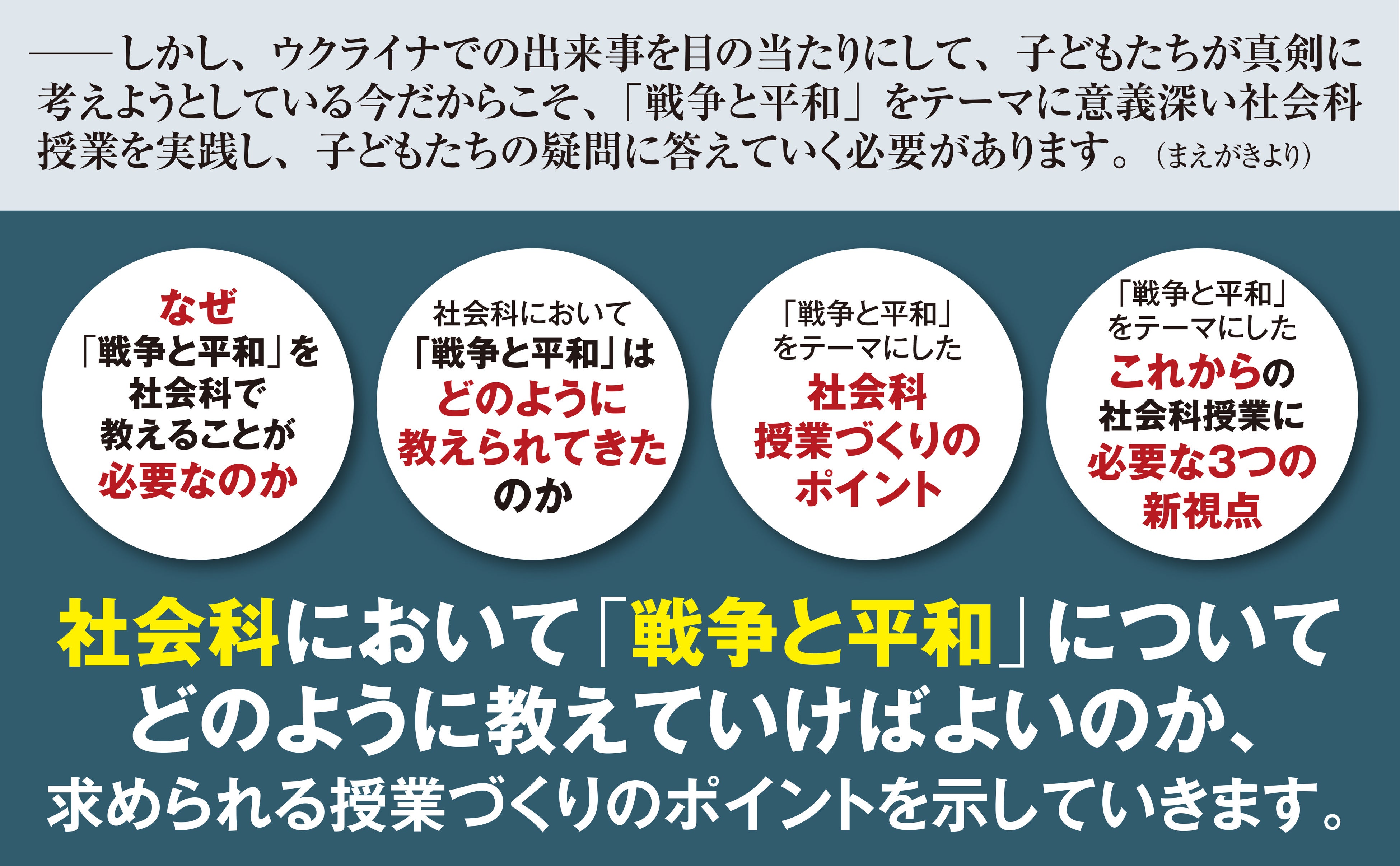 本書では、こうした問題意識に基づき、「戦争と平和」について、社会科でどのように教えていけばよいのか、求められる授業づくりのポイントを示していきます。