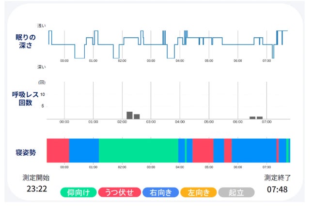 どの体勢でより深い眠りについているかが一目で分かり、自身の睡眠の傾向や特徴を把握する手がかりとなります。