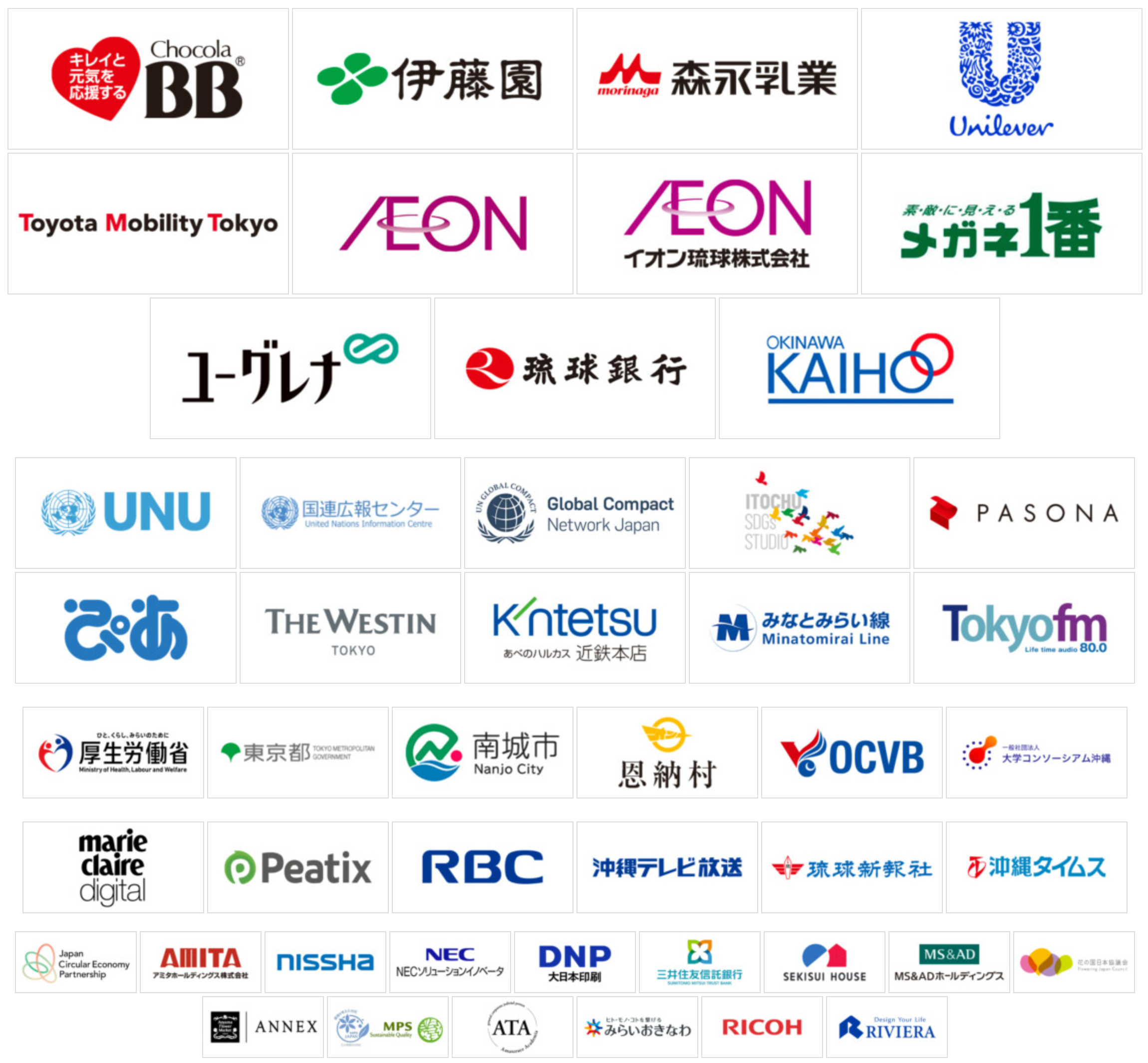 東京都/港区/横浜市/公益財団法人横浜観光コンベンション・ビューロー/一般社団法人横浜みなとみらい21/ヨコハマSDGsデザインセンター/沖縄県/那覇市/南城市/恩納村/公益財団法人沖縄県産業振興公社/一般財団法人沖縄観光コンベンションビューロー/一般社団法人大学コンソーシアム沖縄/琉球大学/名桜大学/沖縄経済同友会/NHK沖縄放送局/RBC 琉球放送/OTV 沖縄テレビ放送/QAB 琉球朝日放送/琉球新報/沖縄タイムス/ぴあ株式会社/TOKYO FM(他申請中)